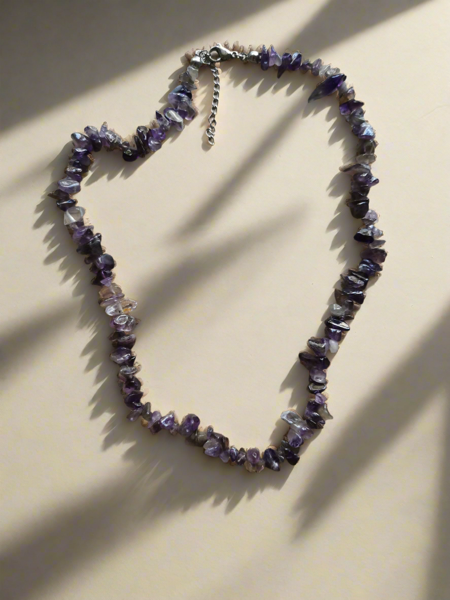 Un girocollo di chips in Ametista per arricchire e adorare il décolleté.